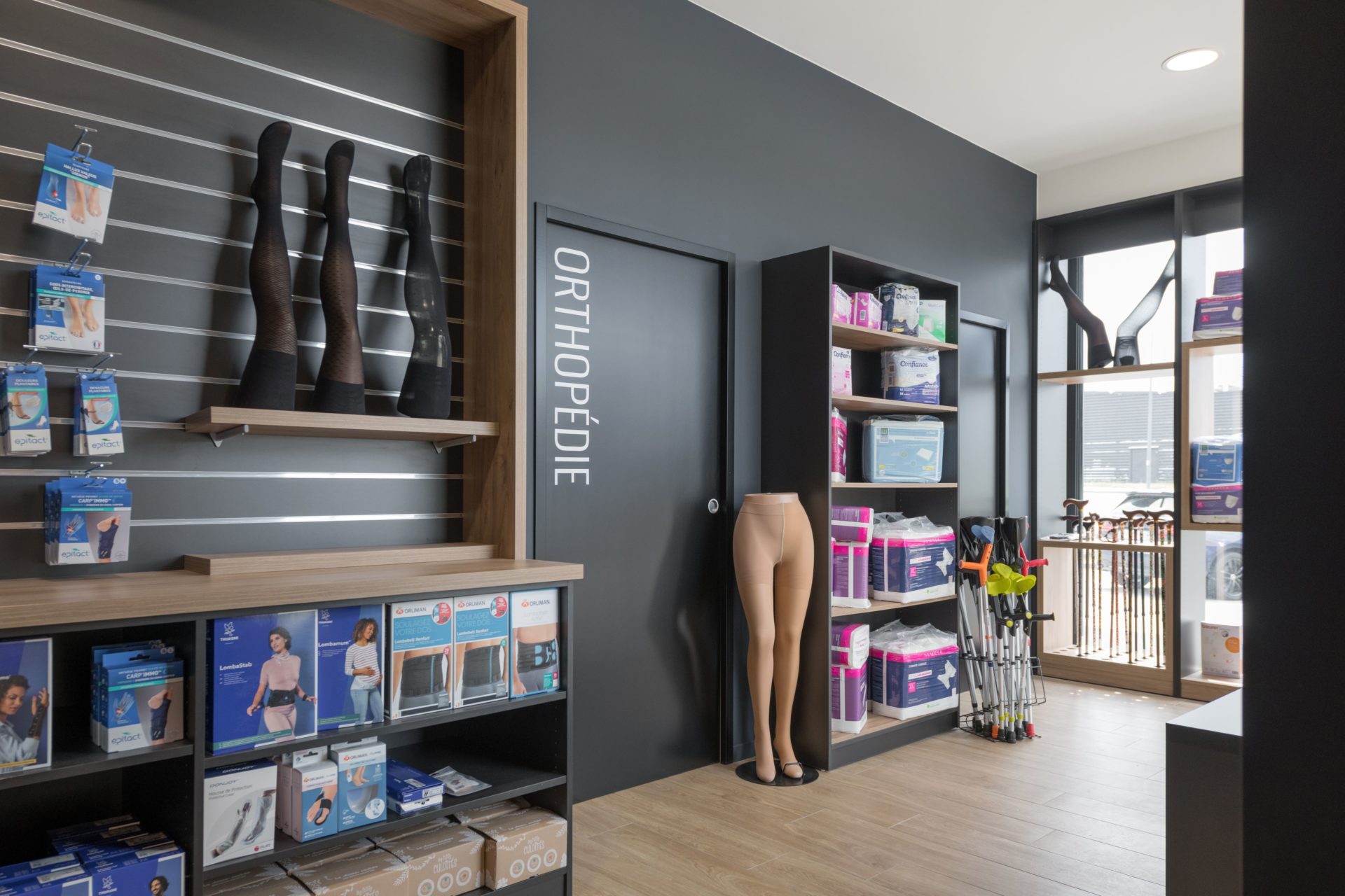Nous avons tiré parti des contraintes architecturales pour mettre en avant l'espace nature grâce à la mezzanine qui formait un volume distinct. Nous avons également travaillé la visibilité de l'espace orthopédie initialement peu visible depuis l'espace de vente car positionné dans l'extension.