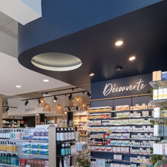 Etendre la surface de vente dans la maison médicale attenante à la pharmacie, afin de mettre en avant les différents univers dans une ambiance accueillante et chaleureuse.